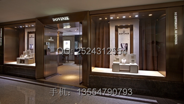Dovinie德維尼珠寶店面的珠寶展柜在布置時,要考慮多種相關因素,諸如空間的大小,種類的多少、商品的樣式和功能、燈光的排列和亮度、通道的寬窄、收銀臺的位置和規模、電線的安裝及的規定等。