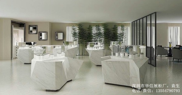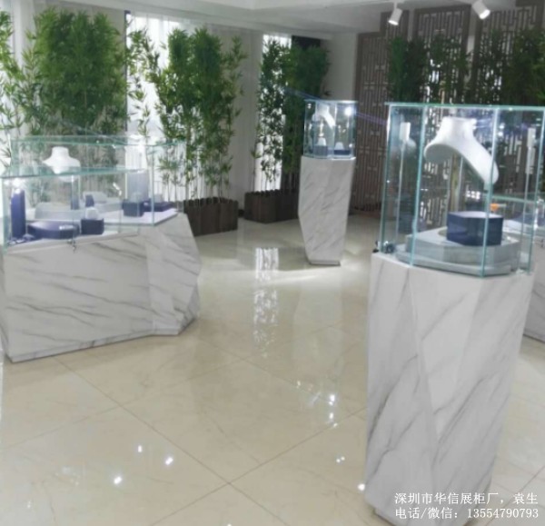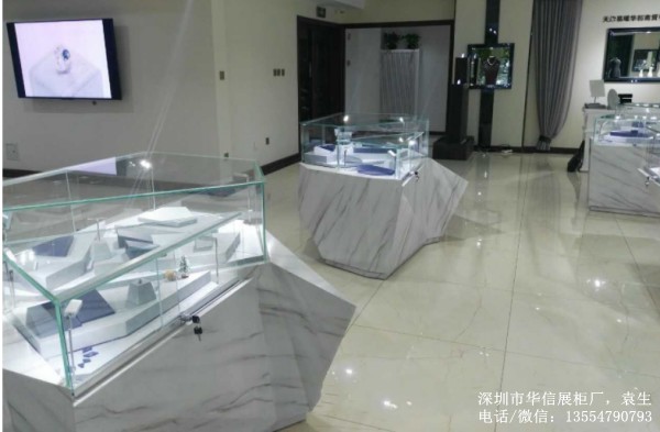 防大理石異形珠寶展廳展柜制作案例: