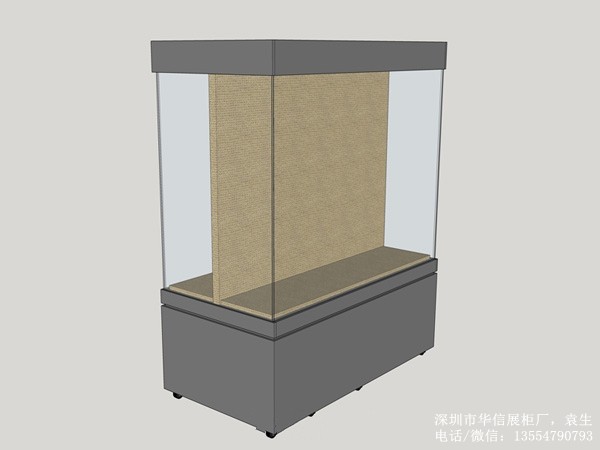 這是一批雙面展示的字畫展柜,如下圖分別有設計效果圖和制作實物圖。其實這個也就是常用的博物館高獨立柜,只不過是在中間加了雙層表面包麻布的木隔板,這樣就分成兩個區域,擺放在中間瀏覽者在兩邊都可以參觀。兩邊在分別裝上LED射燈。由于只是滿足最基本的需求,展柜都是木質結構,表面烤漆,超白鋼化玻璃。如需這樣的,你可以咨詢華信展柜制作公司