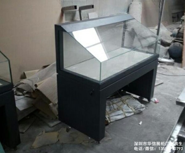 博物館桌柜常用到的款式大概有三種,一是下面帶地柜的,第二是下面沒地柜的,第三就坡面桌柜。這幾款一般的常規尺寸都是1200*600*950mm,展柜上面是玻璃罩,可對展品起到有效的保護作用。桌柜的玻璃罩內可根據客戶要求安裝LED射燈、LED燈條等多種燈具;玻璃罩也可根據需要選擇超白玻璃或者夾膠玻璃兩種。博物館桌柜的開門方式也從最早的背倒式和抽拉式開門發展到現在比較先進的液壓掀起是開啟開門。下面附三種款式的圖片。