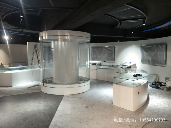 廣州現(xiàn)代科技展覽館弧形展柜現(xiàn)場安裝(四):
