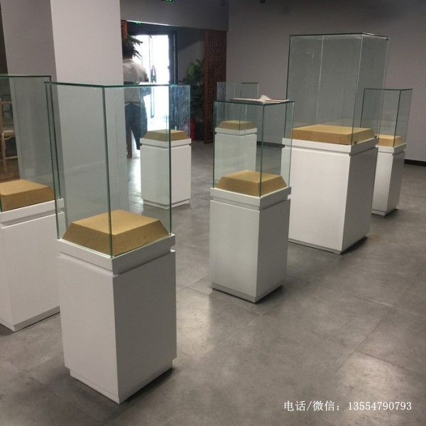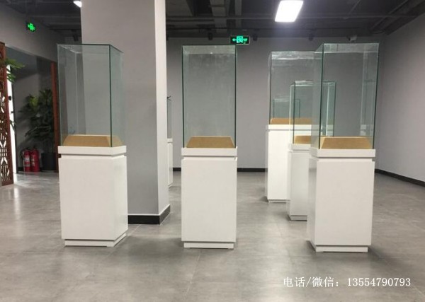 展館內(nèi)的獨(dú)立柜都是夾板做結(jié)構(gòu),表面貼密度板做白色烤漆,柜內(nèi)梯形臺外包米黃色麻布。10厘超白鋼化玻璃,館內(nèi)布置的燈光效果較好,獨(dú)立柜內(nèi)沒有安裝燈具。具體細(xì)節(jié)請咨詢?nèi)A信展柜廠家。