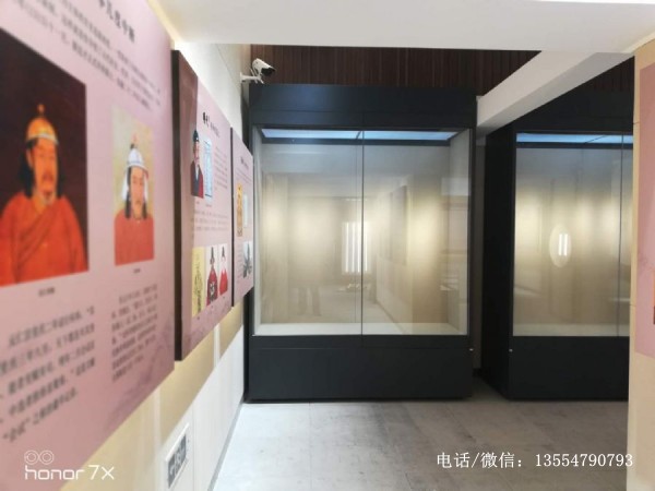 以下安裝完工實(shí)拍只是河北民俗文化博物館內(nèi)的一個(gè)展廳,展廳內(nèi)的博物館展柜采用2.5mm厚做防銹處理的方鋼管做結(jié)構(gòu),表面1.5mm冷軋鋼板高溫粉末噴涂黑色烤漆,玻璃為6+6超白夾膠玻璃,展廳內(nèi)的條柜為液壓掀起式開啟,靠墻背柜為平移門開啟。如需定做這樣的博物館展柜你可咨詢我們工廠。