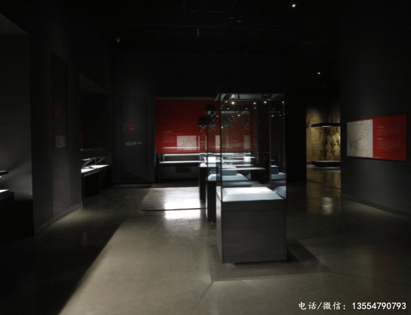 博物館展柜的外表面應當干凈整潔,在陳列布展時一定要徹底清理干凈,同樣款式的展柜要在一個水平線上,給參觀者一種大氣恢弘的感覺。在場地布置背景墻時確保所貼壁紙相連接的平整度,顏色上應當與文物相映成輝。