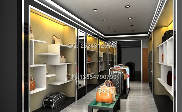 ? 此款箱包展示柜在設計上,是根據具體的場地尺寸給出的因地制宜的設計,色彩搭配,以及燈光設計都是根據產品特點和產品的主流色彩來設計的。