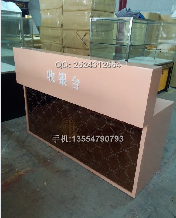 1、收銀臺板材:選用進口高密度板,抗彎力強,不易變形。