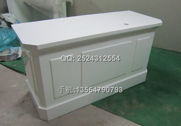 1、收銀臺板材:選用進口高密度板,抗彎力強,不易變形。