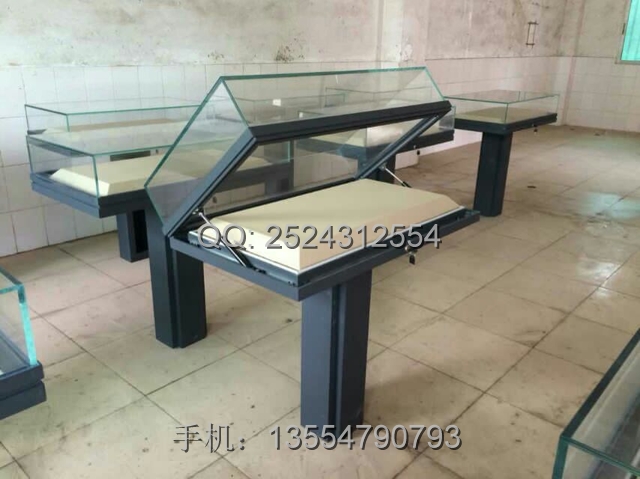 專用玻璃:5+5超白夾膠鋼化玻璃,進口設備切割,玻璃45度對接無影膠粘接,玻璃與博物館展示柜柜體鏈接處采用高彈性硅膠密封條;柜體框架及面層做酸洗防銹處理,高溫靜電噴塑。
