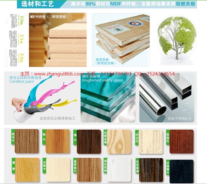 上面僅是列出的部分展柜制作過程中涉及到的材料,例如油漆和不銹鋼以及鋼化玻璃包括各類飾面板材,華信展柜廠選擇有品質(zhì)保證的原材料。如下圖華信展柜公司(m.flaredup.com.cn)材料選擇: