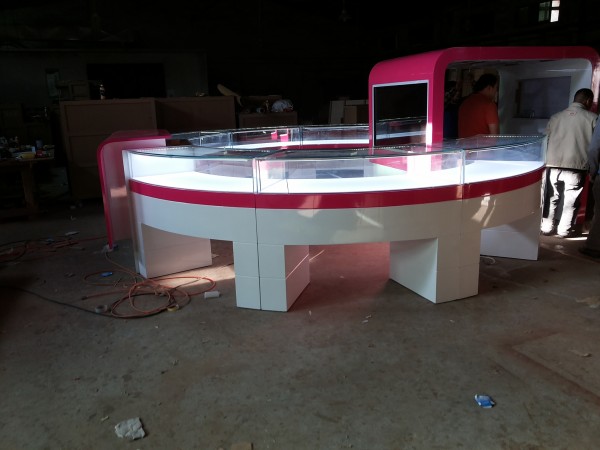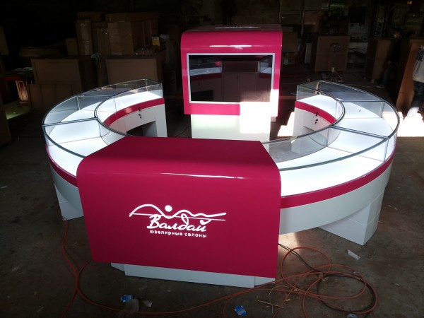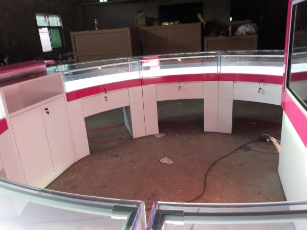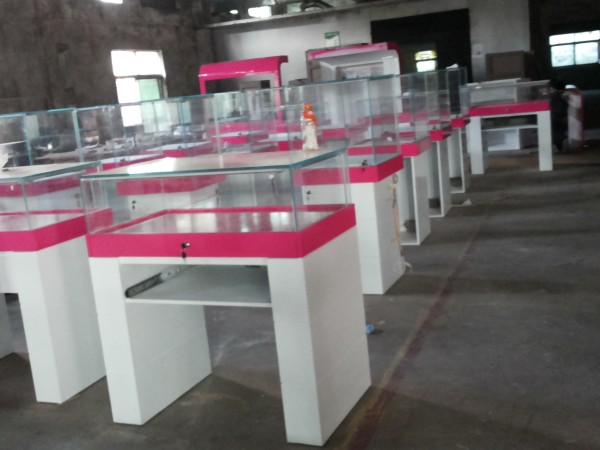 出口俄羅斯白色亮光烤漆珠寶展柜訂做工廠制作案例。