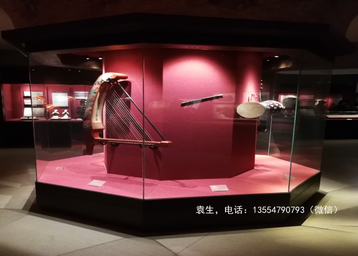 多面不規則博物館展柜是木質結構,夾板做基層,外貼實木飾面板做油漆,玻璃為12厘超白鋼化玻璃。